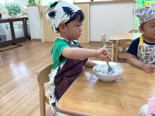 今日はぶどう組さんは初めてのクッキングがありました!