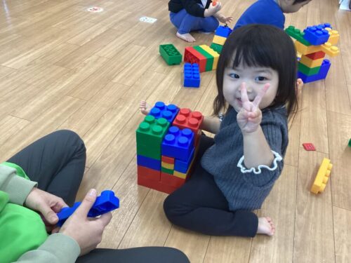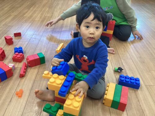 もも組さんとみかん組さんはブロックでのんびりと遊びましたよ!