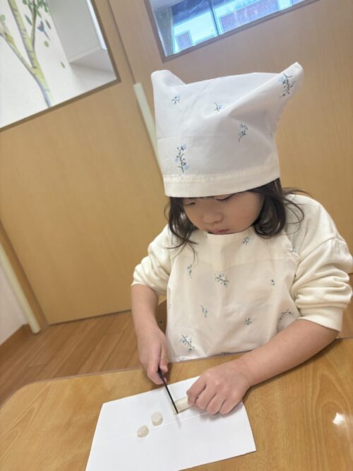 大きめに切ったり、小さめにたくさん切ったりとそれぞれ上手にできていました✨