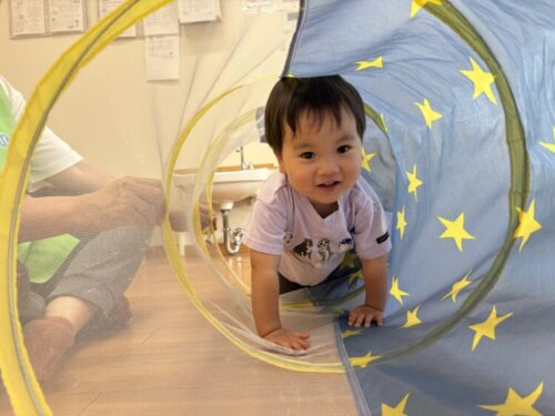 跳び箱からのジャンプ、階段、トンネルを用意してお部屋の中でもたくさん体を動かしましたよ‼️