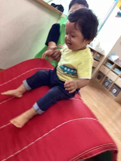 最初はマットで滑り台を滑りましたよ!
