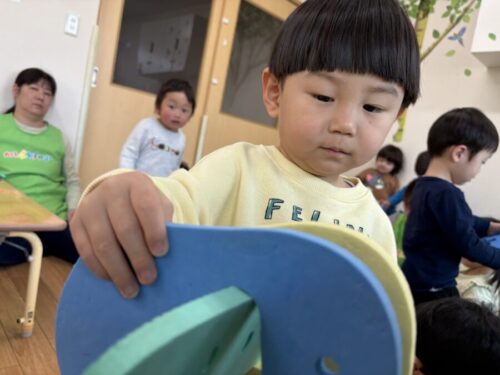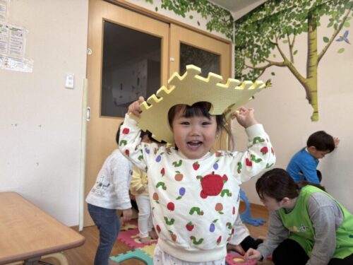お友だち3人でこのように頭につけて楽しそうに遊んでいましたよ😊
