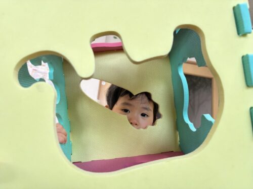 正方形を作って、穴から覗いていてかわいかったです❣️