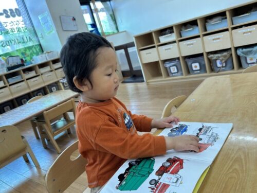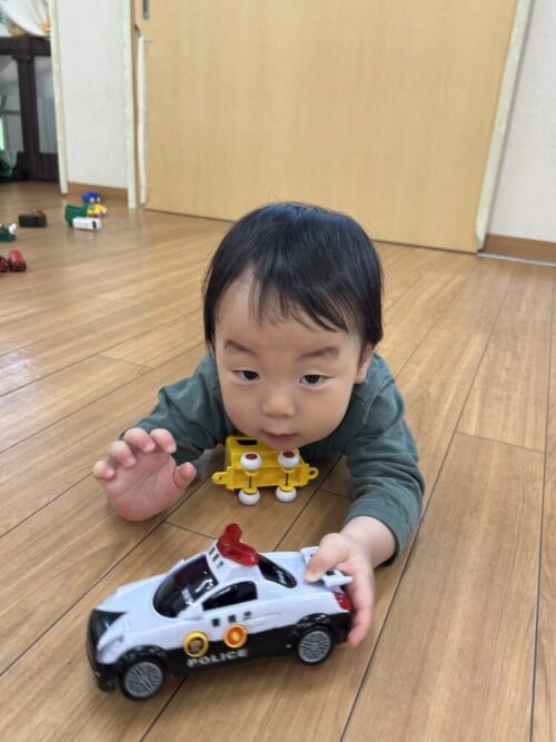 フラワー後は絵本や車、布製玩具など各々が遊びたい玩具を選んで