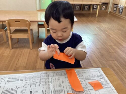 木のところを拭いて、湿って色が変わると「茶色くなったー!」と言って大興奮でした‼️