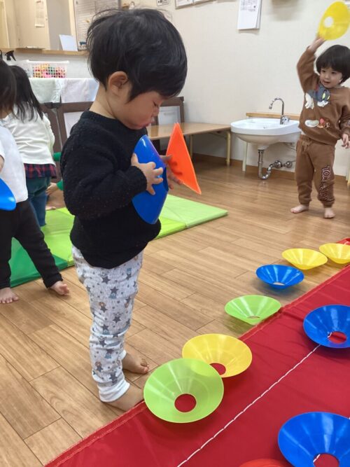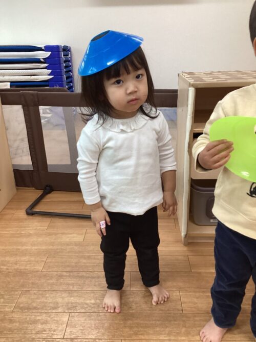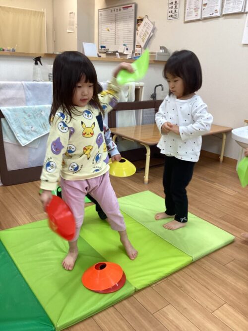 マーカーコーンを頭に乗せてバランスを取って歩きました😆