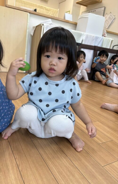 子どもたちが大好きな「みずあそび」の歌に合わせて楽器演奏を楽しみましたよ😊