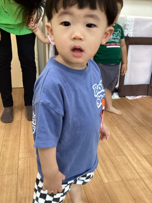 みんなとても上手に、ピアノに合わせて歩いたり、ユラユラしたり、頭をチョンチョンしたり、膝をトントンしたりして楽しんでいました♪