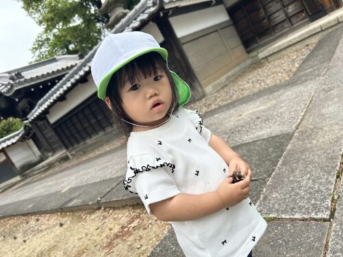 保育園の周辺をお散歩してから、隣のお寺で遊びました。