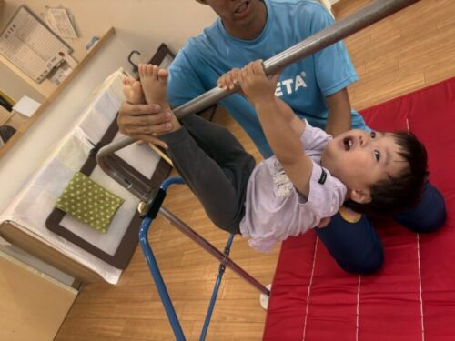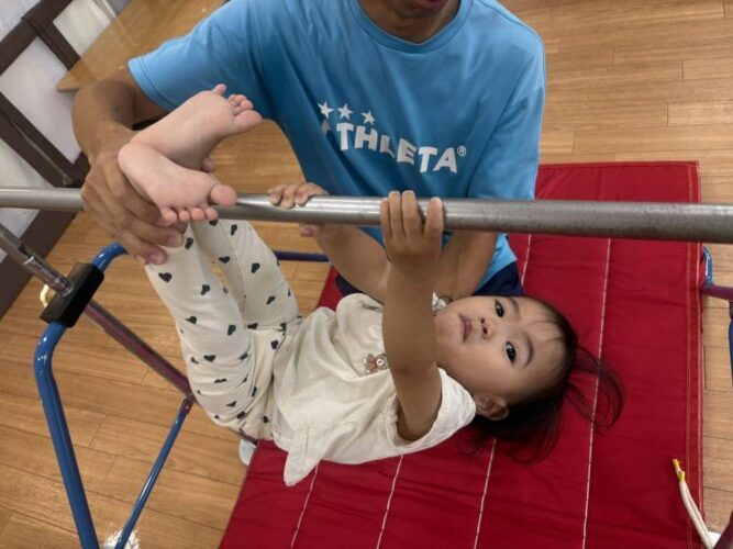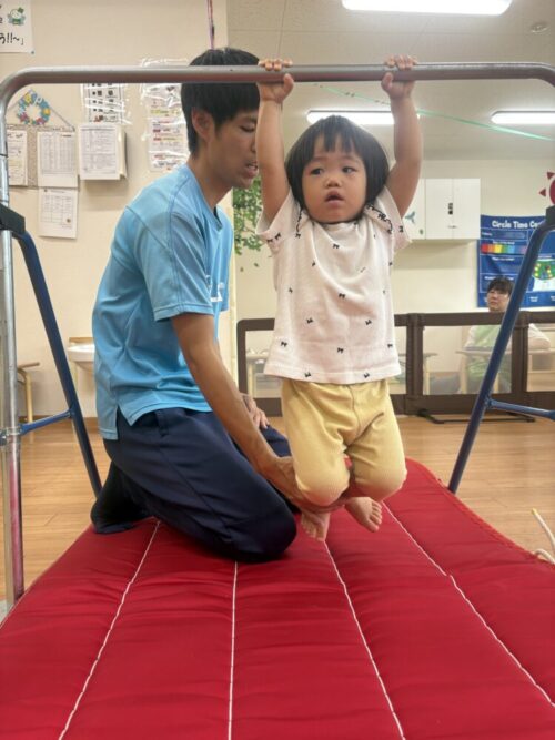 体操の先生に足を上げてもらったお友だちも自分でギュッと握って上手にぶら下がることができました‼️