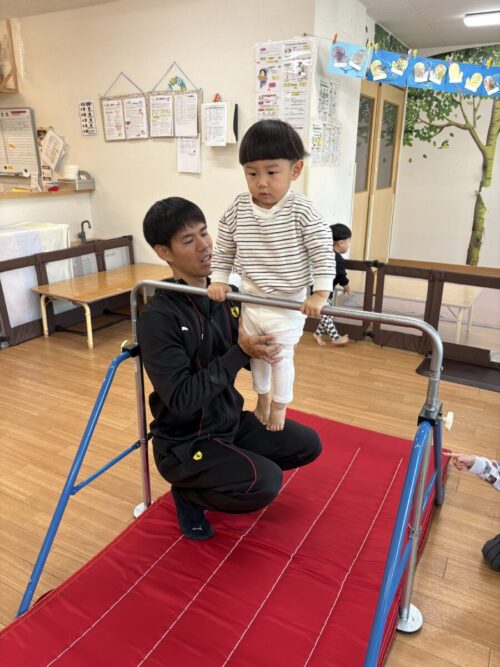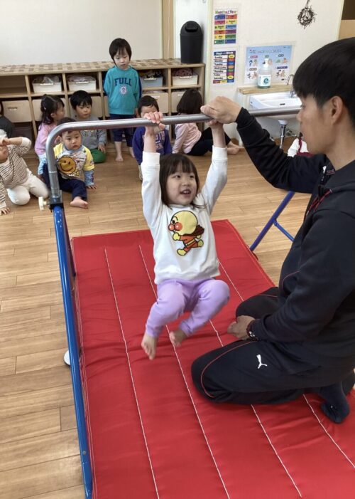 握力が付いてきて、もも組さんもぶどう組さんも自分の力でしっかり握り、手を離してしまうこともないです✨