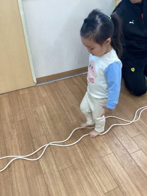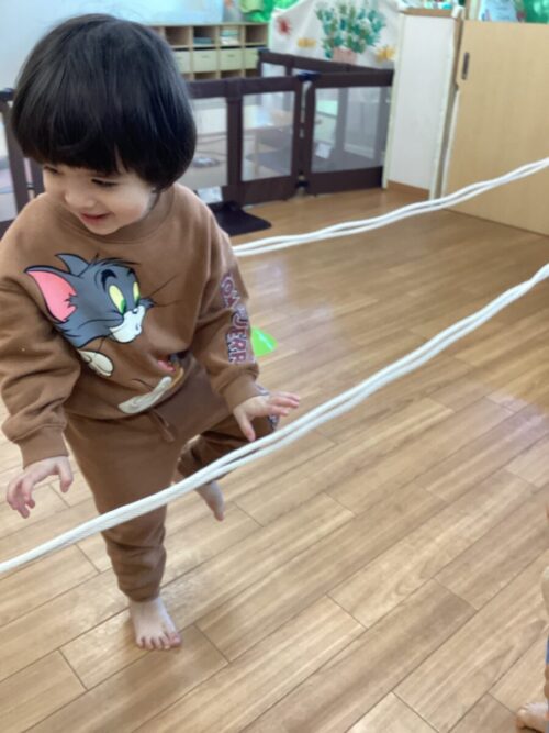 段違いのロープは、くぐって、ジャンプして…とたくさん体を動かしました💨