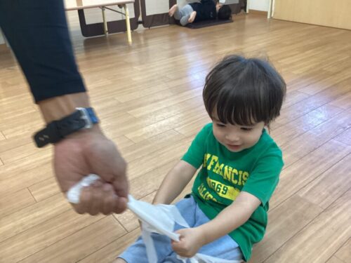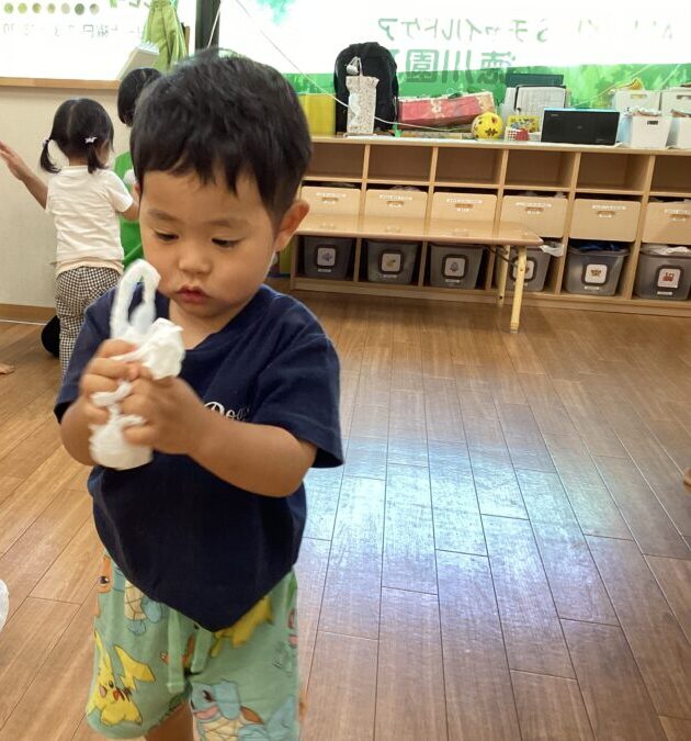 ビニール袋をくしゃくしゃにして投げてキャッチしたり〜