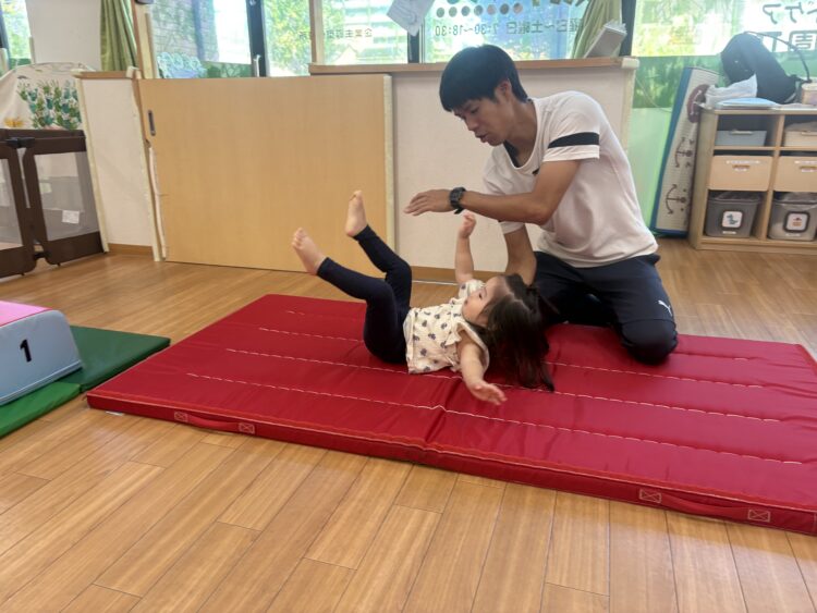 体操の先生の補助ありで上手にでんぐり返しできました✨