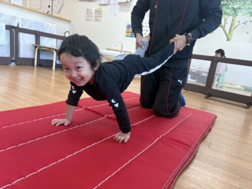 もも組さんは難しいお友だちもいましたが、体操の先生の助けのもと最後まで諦めずにできました✨