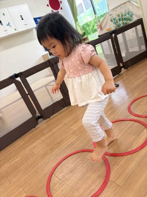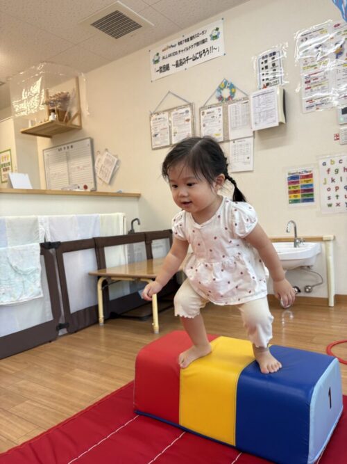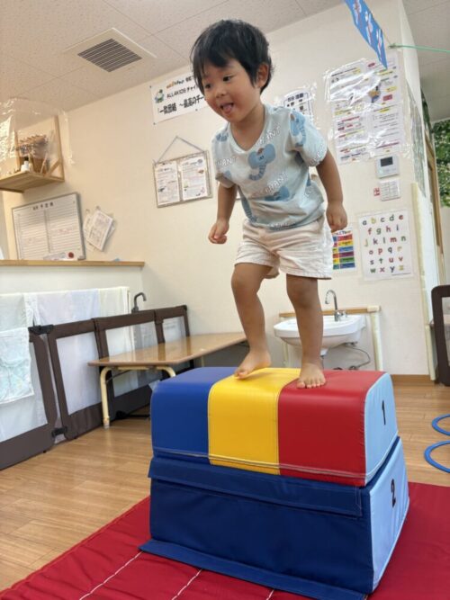 高いのは怖いお友だちもいたので、先生と手を繋いでジャンプしましたよ😌
