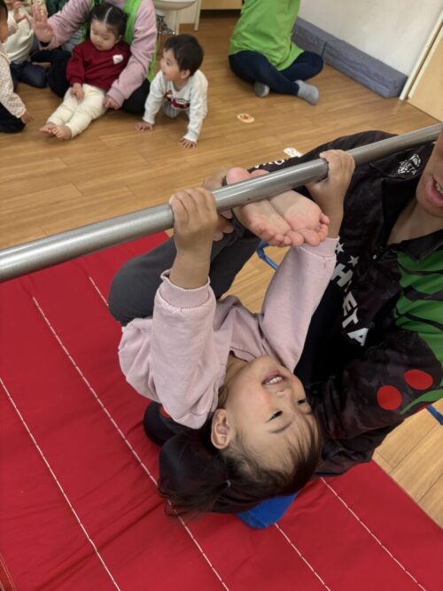 もも組さんは足抜き回りの途中までに挑戦して、ぶどう組さんは足抜き回りに挑戦しました!