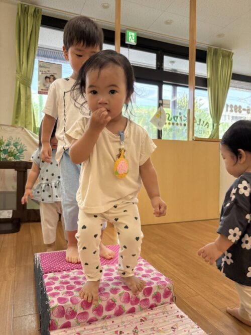 階段はぶどう組さんも楽しんでいましたが、特にもも組さんに人気でした❗️