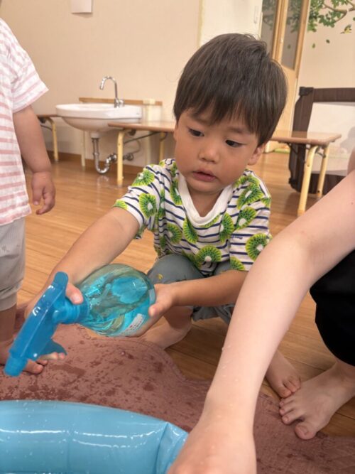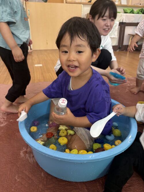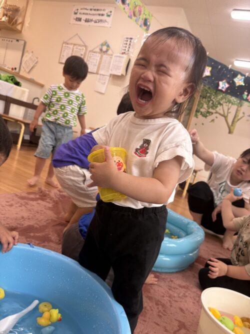 水浸しになったり、おもちゃを手にして遊んだりとそれぞれ楽しんでいました😊