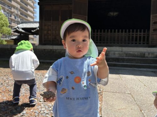 徳源寺では、松ぼっくりや松の葉っぱを手にして遊んでいました!