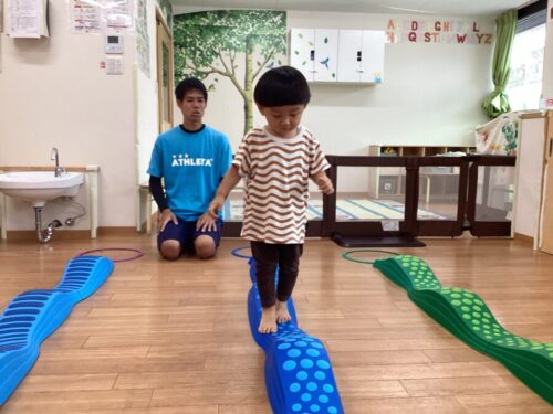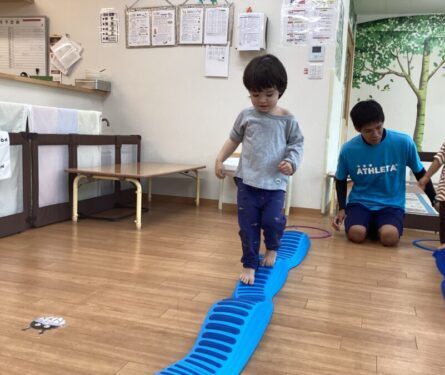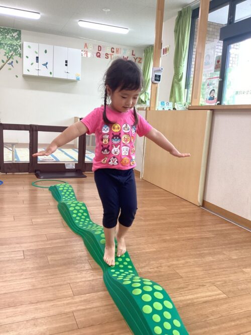 運動会で平均台を使った競技があるのでそれに向けて練習しました!