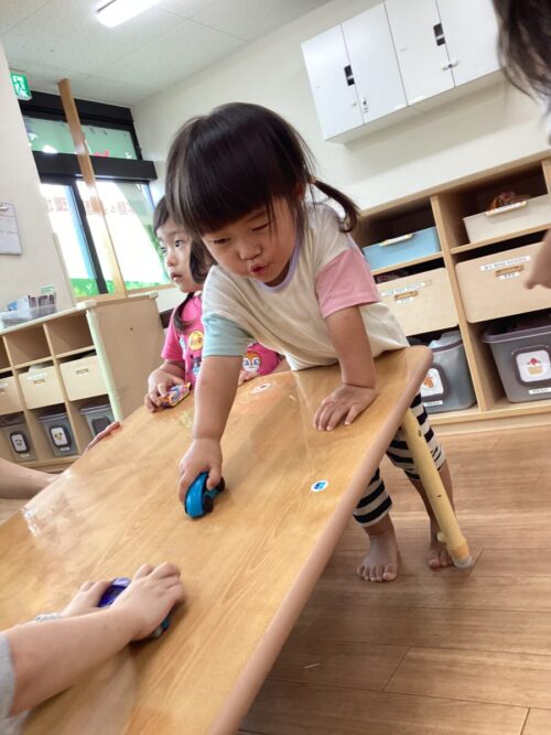 体操教室が終わってからは、子どもたちが大好きな車で遊びました!
