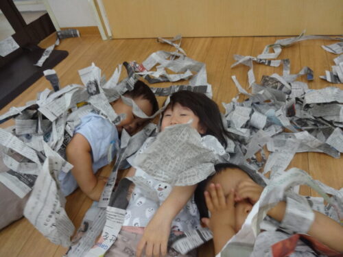びりびりに破いた新聞紙で