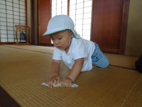0.1歳児さんは戸外活動は控えて室内で遊びました。