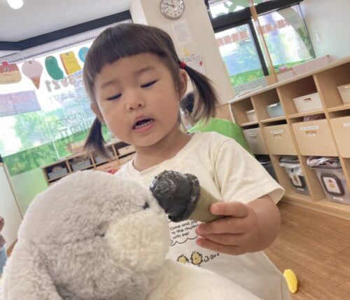人形に「あーん」と食べさせてあげる優しい姿をみせてくれました♡