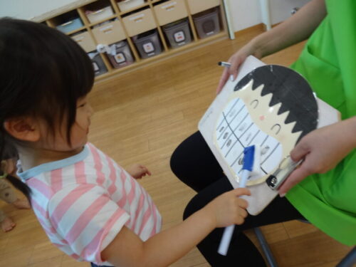 イラストを使ってシャカシャカ歯磨き体験をしましたよ😊