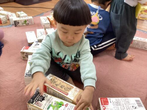 牛乳パック積木で遊んだよ🎵