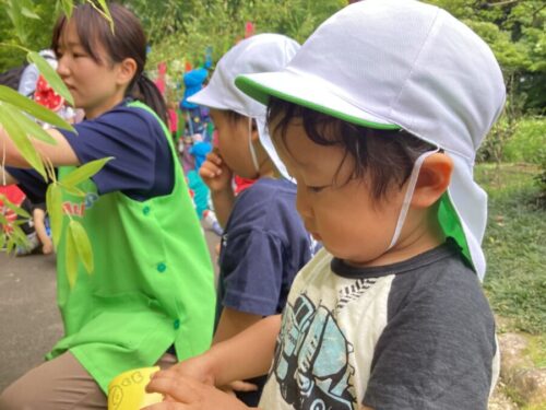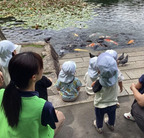 短冊を飾り終え、鯉やカモがいる池までお散歩しました♪