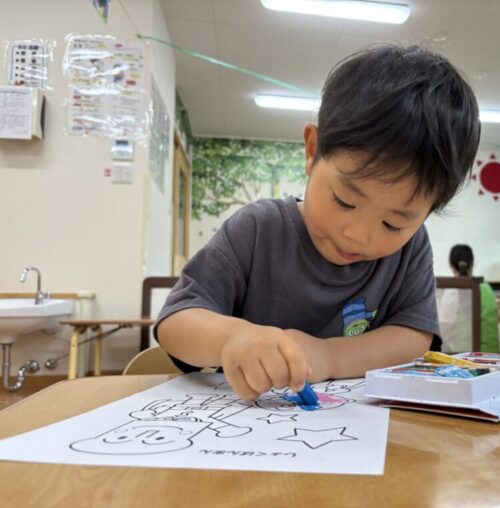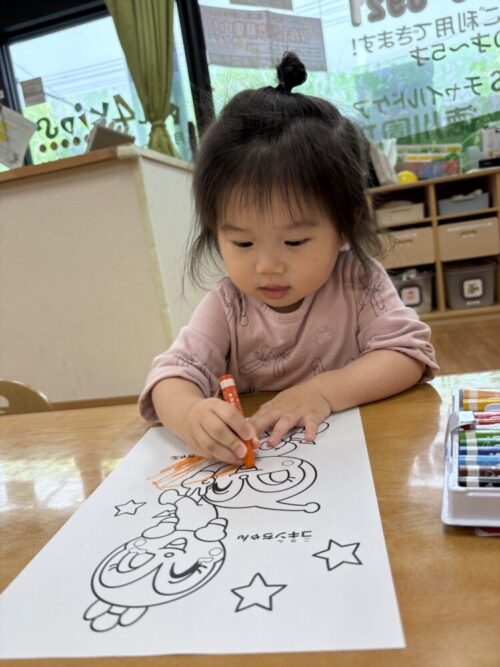 いろいろな色を使って楽しんで、できあがると自慢気に見せてくれましたよ😊