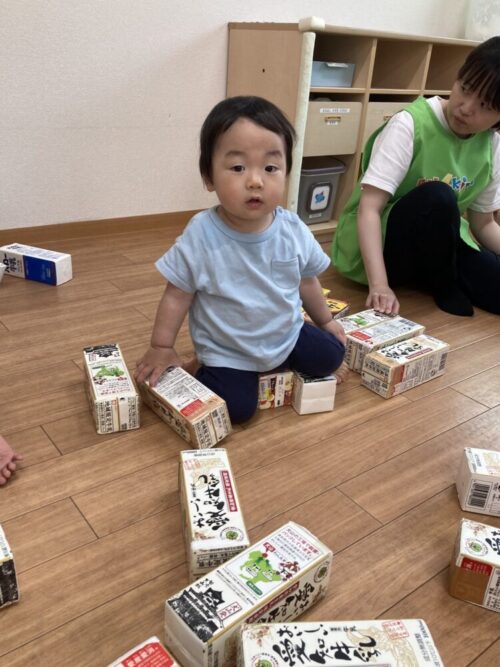 たくさん並べて道を作ったり、お家のようなものを作ったりしてとっても楽しそうに遊んでいました😆