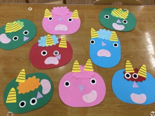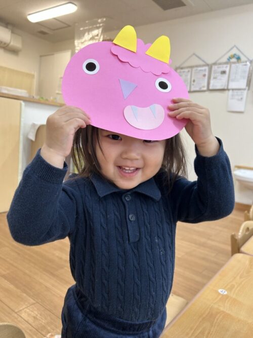 もうすぐ節分ということで、今日は鬼のお面を作りました!