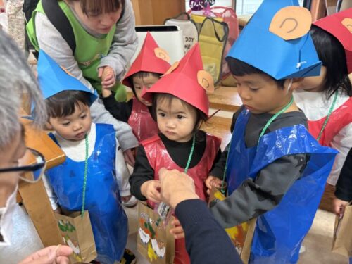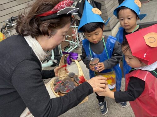 おかしもたくさんもらって、子どもたちもうれしそうに「おかしいっぱいもらったね〜」と言っていました♪