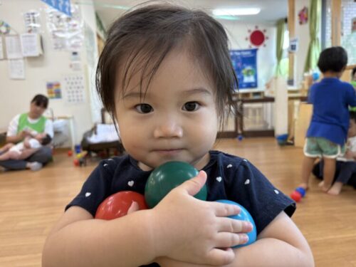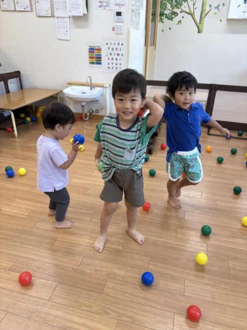 いろいろな色を口にしたり、投げたり、蹴ったりして楽しみましたよ😊