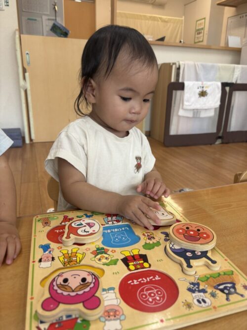 もも組さんにはアンパンマンのパズルが大人気でした‼️