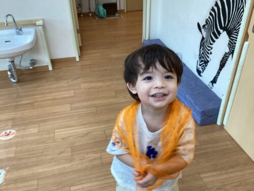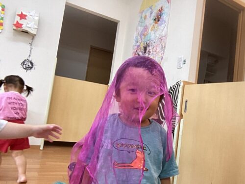 いつもリトミックで使うシフォンを遊びで使ってみました!