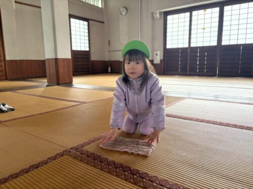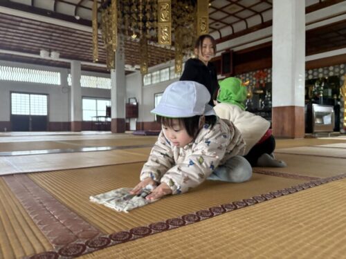さて、今日はぶどう組さんはボランティア活動で徳源寺の掃除に行きました!
