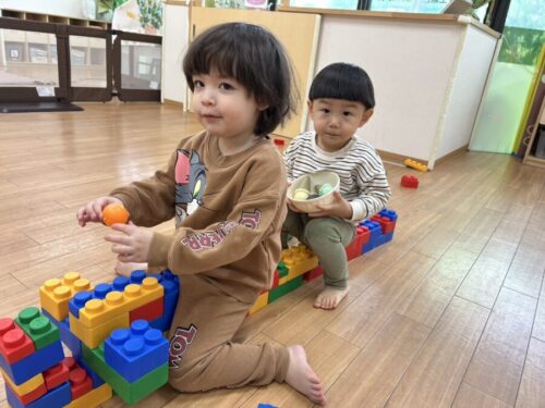 子どもたちのリクエスのブロックをしたりおままごとをしたりしましたよ😊