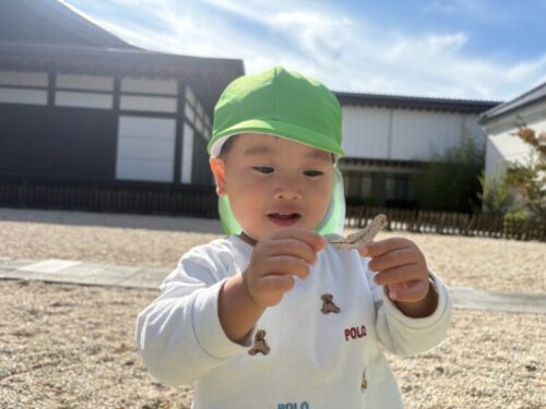 落ち葉を拾って嬉しそうに見せてくれました😊