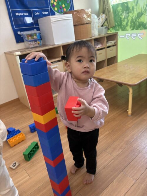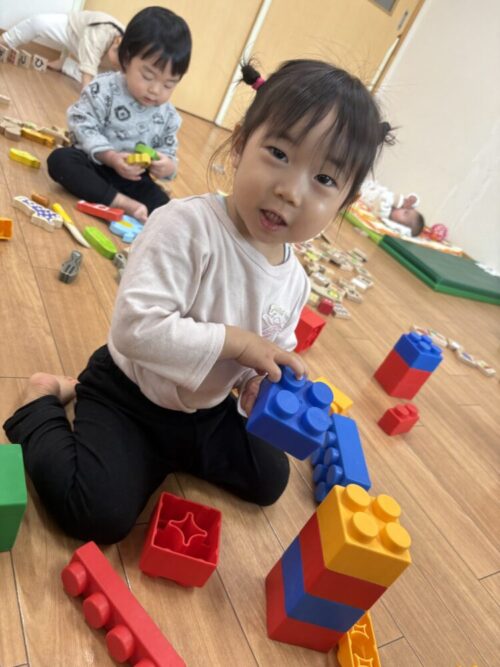 積み木を器用に積み上げるお友だちも✨