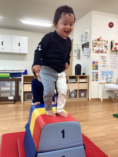 サーキット遊びでは跳び箱、トンネル、マットを出してお部屋の中でも元気いっぱい体を動かしました‼️