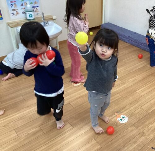 拾っては投げてを繰り返したり、好きな色のボールを集めたりして楽しんでいましたよ😊
