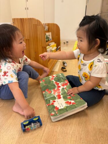 一緒に絵本を読むお友だち📕