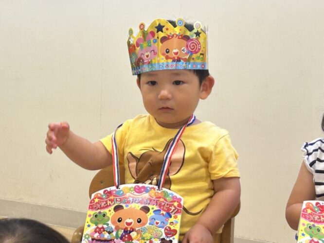 少し緊張気味でしたが、お友だちやせんせいにお祝いしてもらって嬉しそうでしたよ☺️