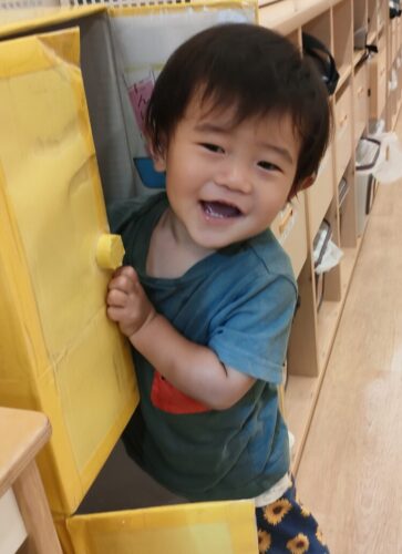 朝からニコニコの0歳児さん☺️笑顔がとても可愛らしいです❣️