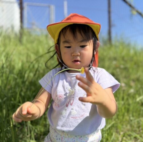 👧「バッタさんはいなかったけれど、可愛いお花を見つけたよ🌼」