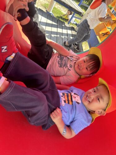 「がんばれ〜お兄さん〜🩷」とみんなが可愛らしい笑顔でエールを送っていました!!!すると!お兄さんたちが気がついてくださって、手を振ってくださいました👋